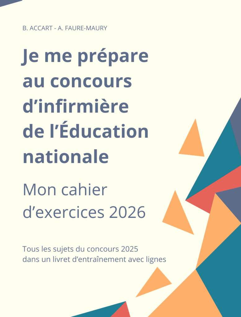 Le cahier d’exercices propose de s’entraîner avec les véritables sujets écrits sur lesquels les candidates ont composé lors de la session précédente du concours de recrutement des infirmières de l’Éducation nationale.